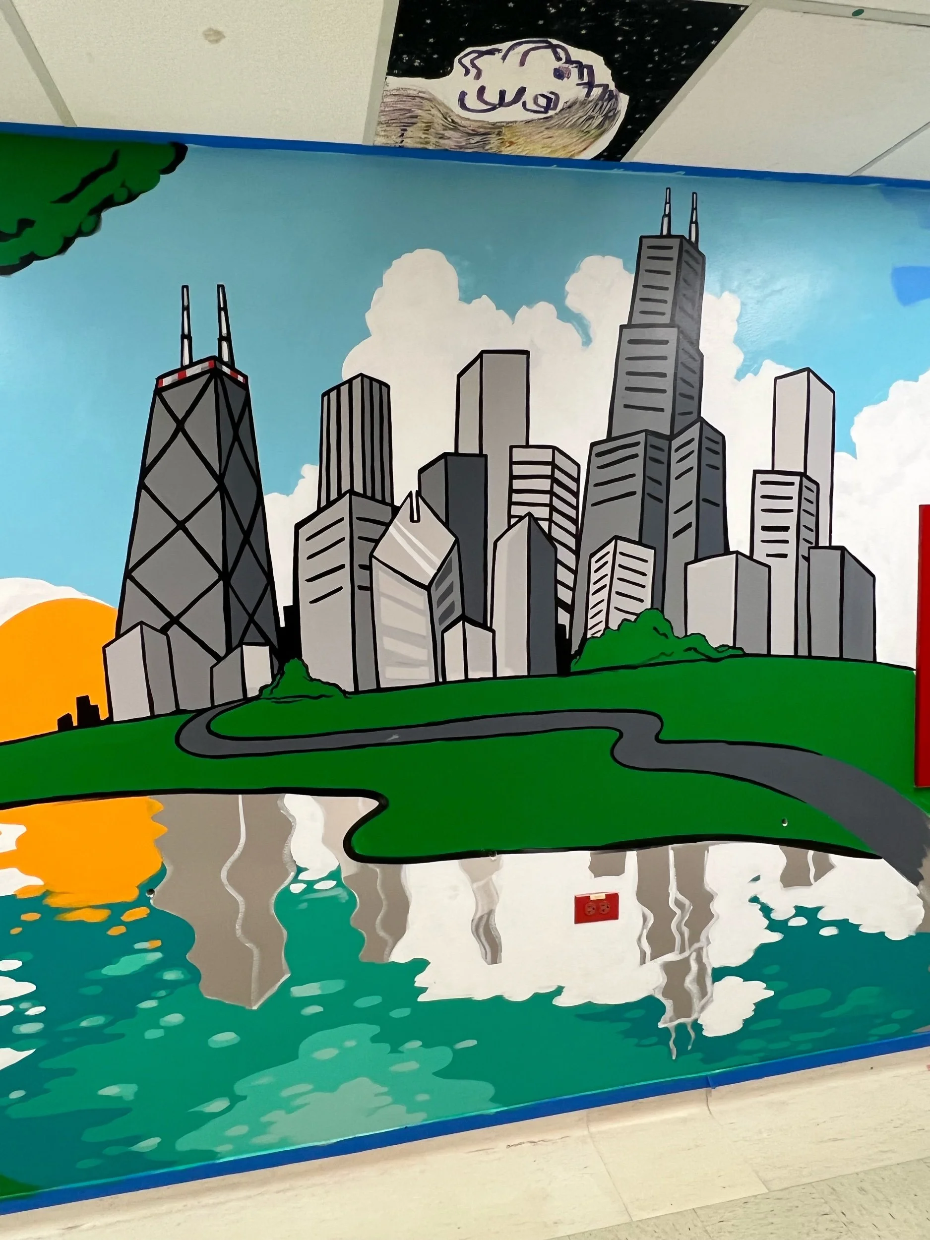 this mural is located in the Psychiactric unit in the Univerity of Illinois Chicago Hospital.